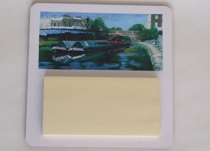 Magnetic note holder 19cm high x 16cm wide, complete with sticky notes, picture “Regents canal Islington” by Sylvia Hankin.